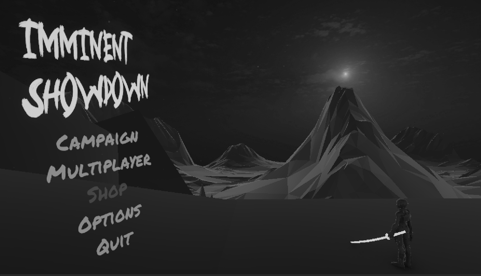 A simple prototype of a World-Space main menu for a game alongside a HUD mockup. Based on an idea for an online melee combat game that may see the light of day eventually.